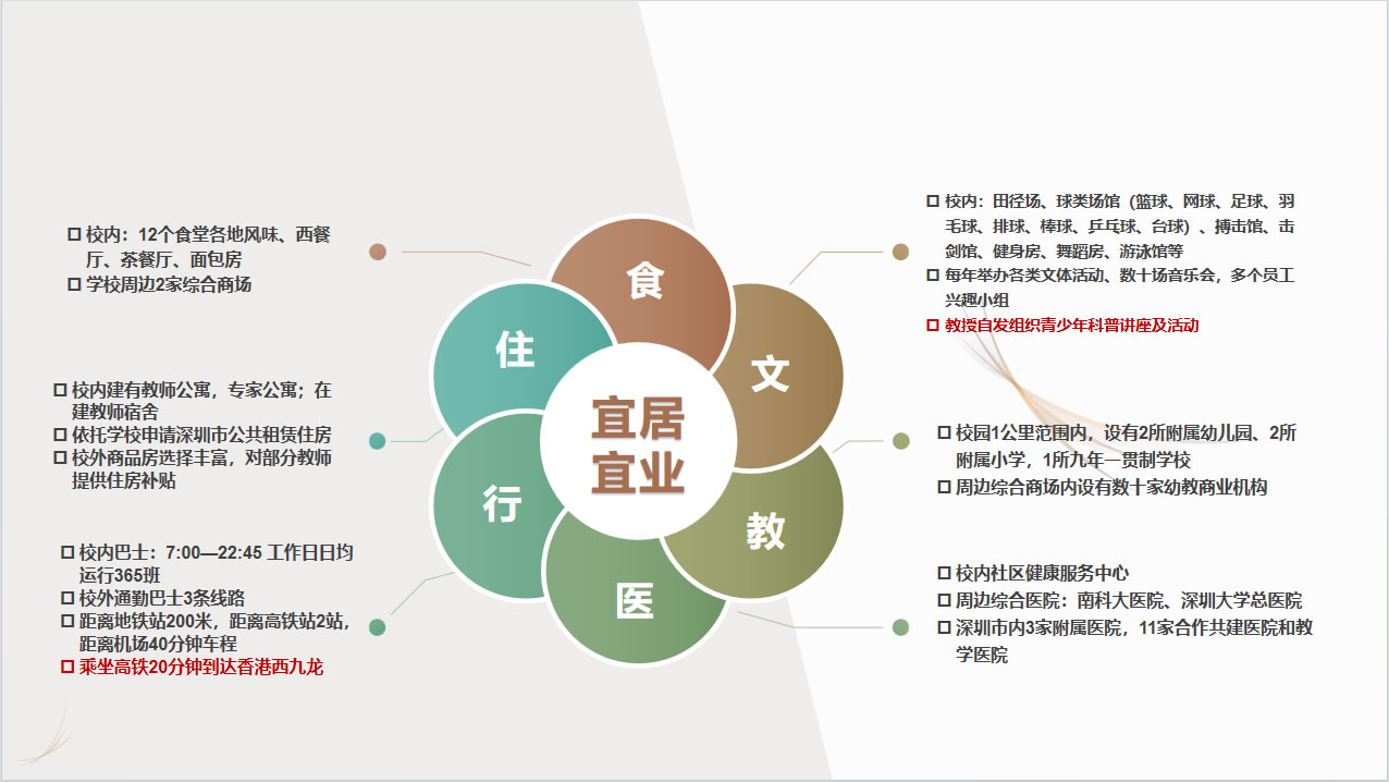 3.醫(yī)療服務(wù):深圳市內(nèi)有3家附屬醫(yī)院,11家合作共建醫(yī)院和教學(xué)醫(yī)院,可為教職工提供醫(yī)療服務(wù)。